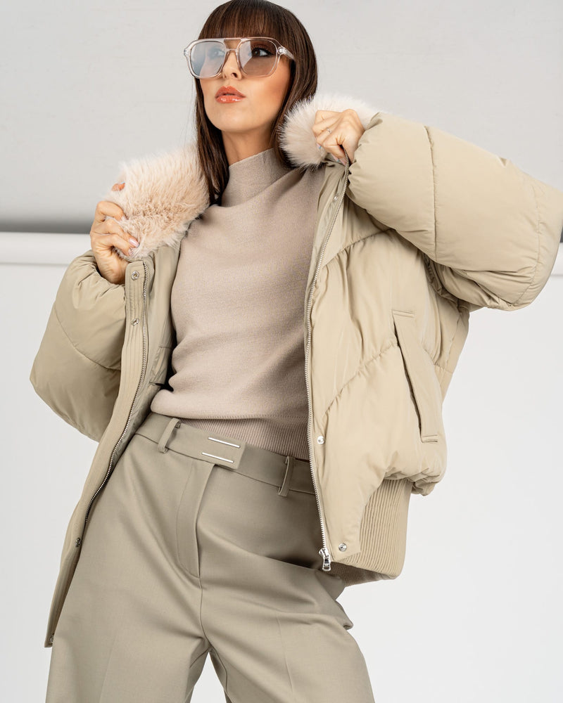 Maglia Crop Logo Jacquard Natural Dust