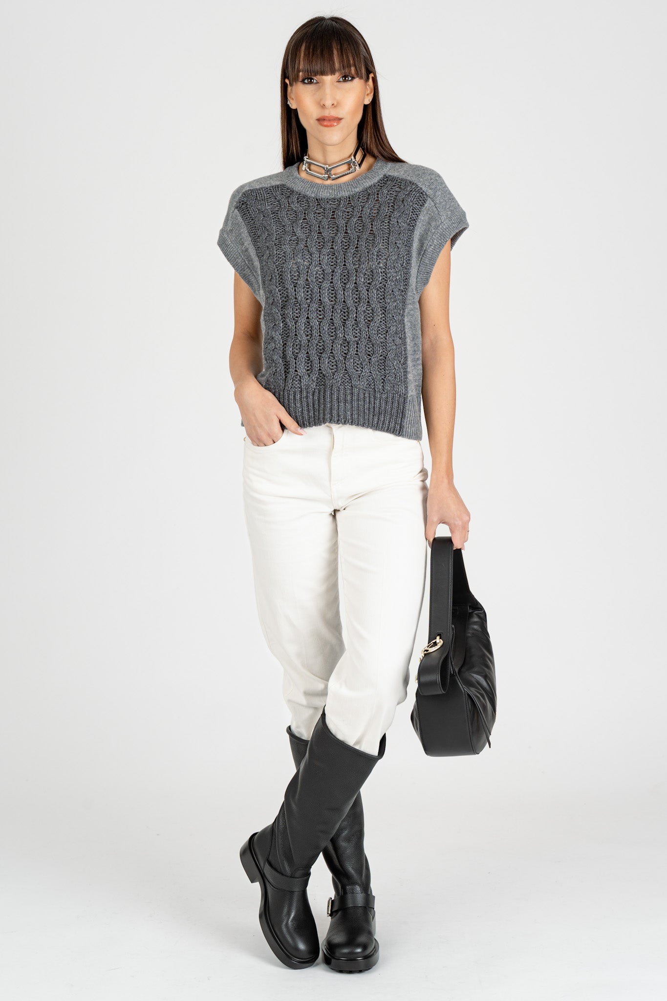 Gilet in Maglia Grigio