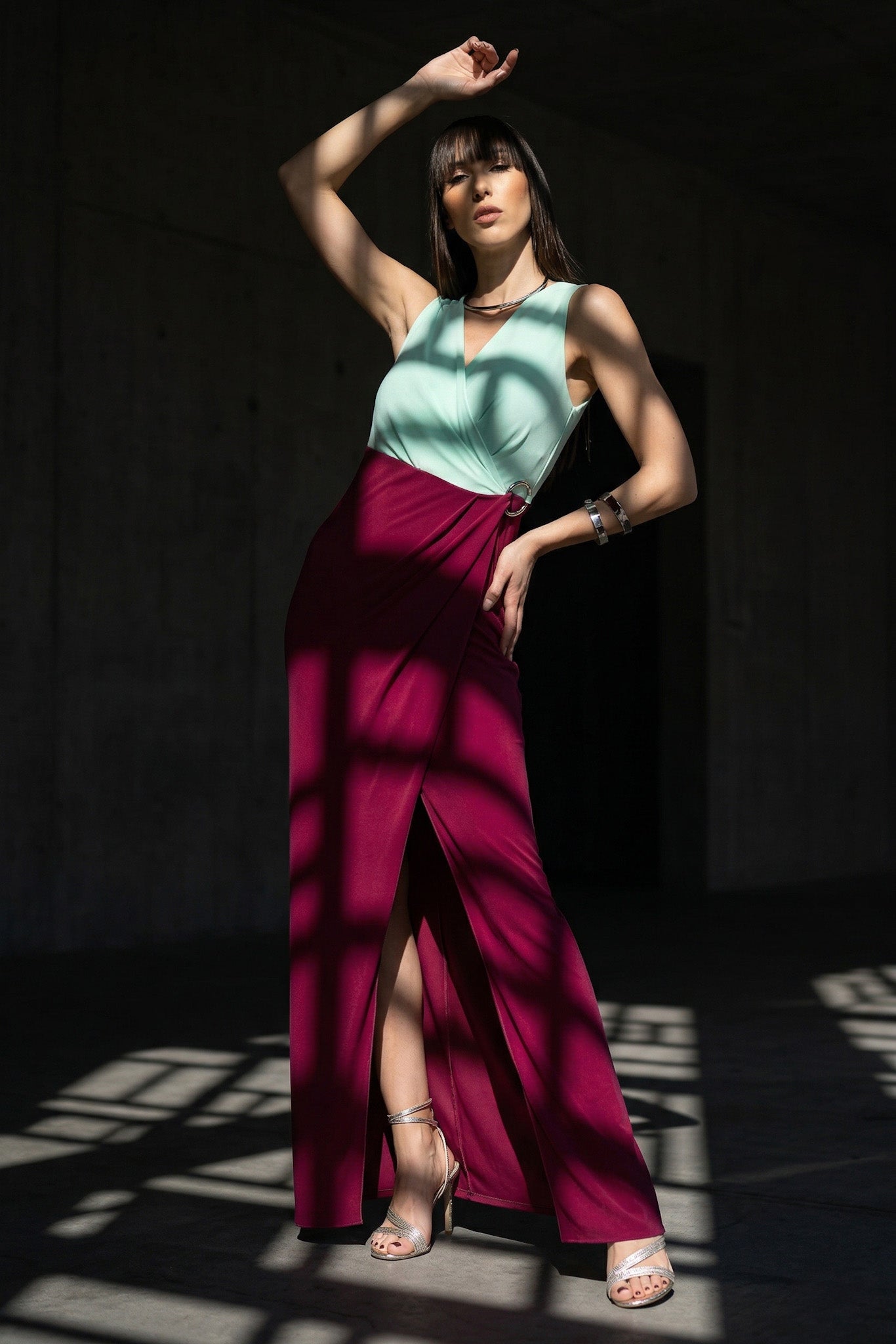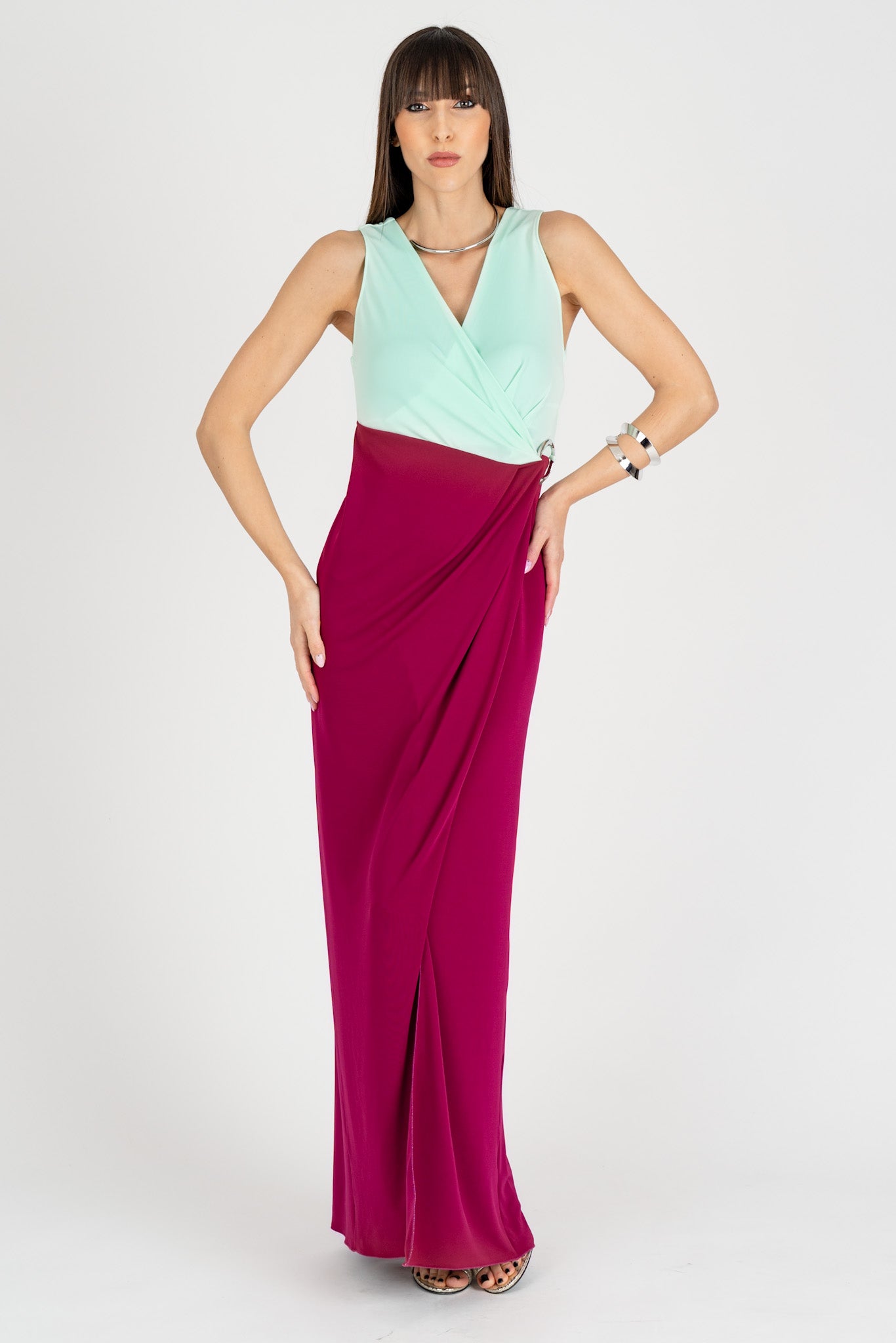 Abito Block Color Summer Burgundy Aqua