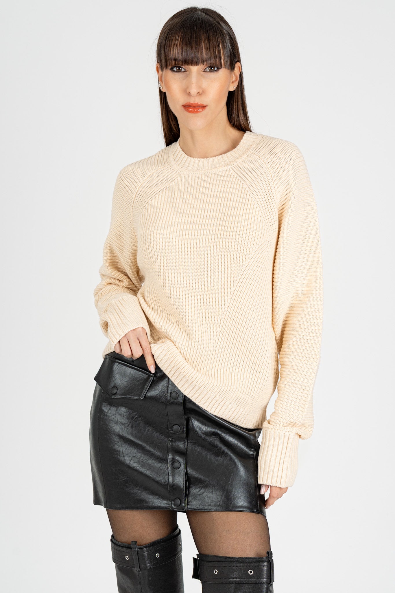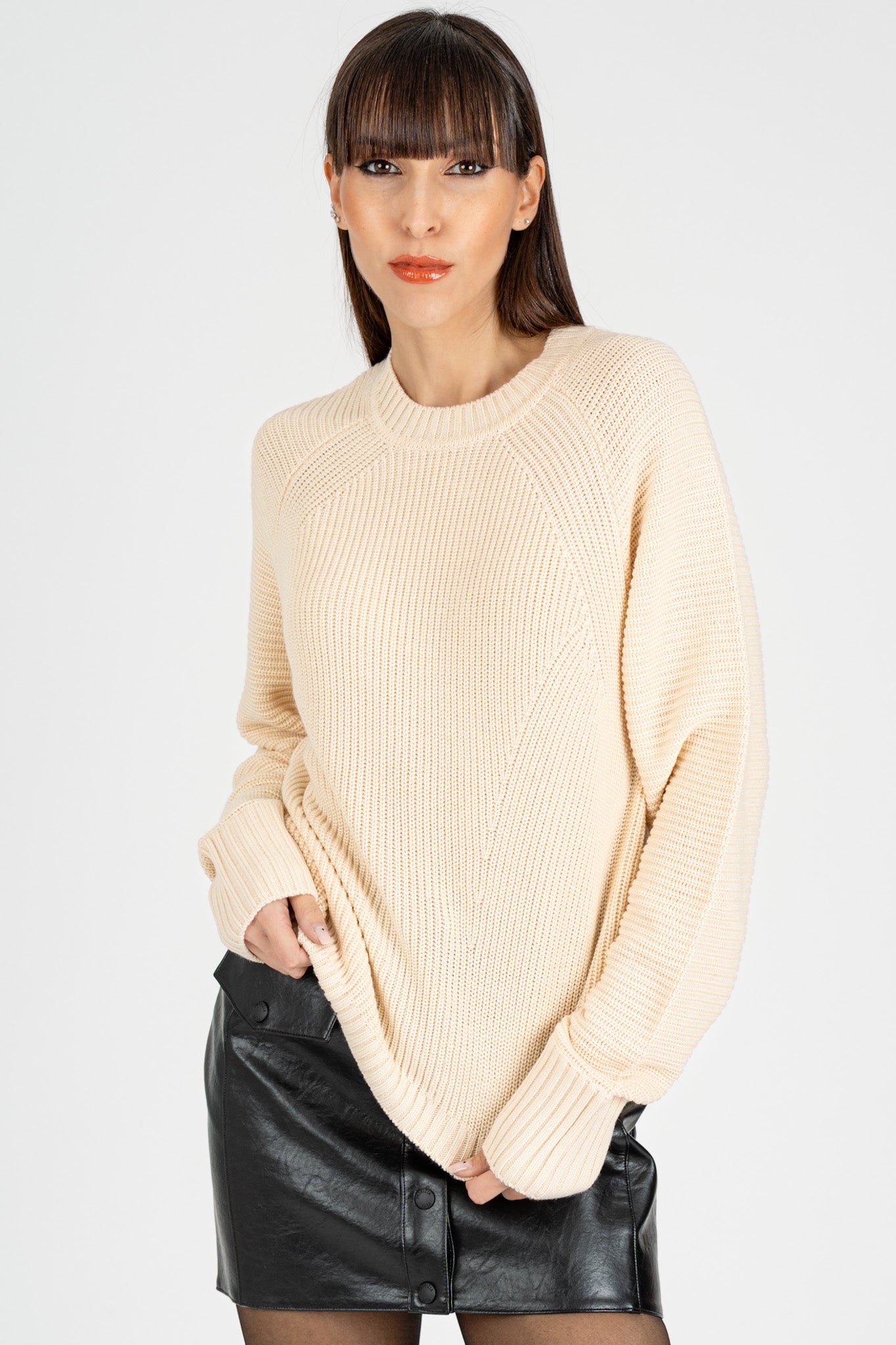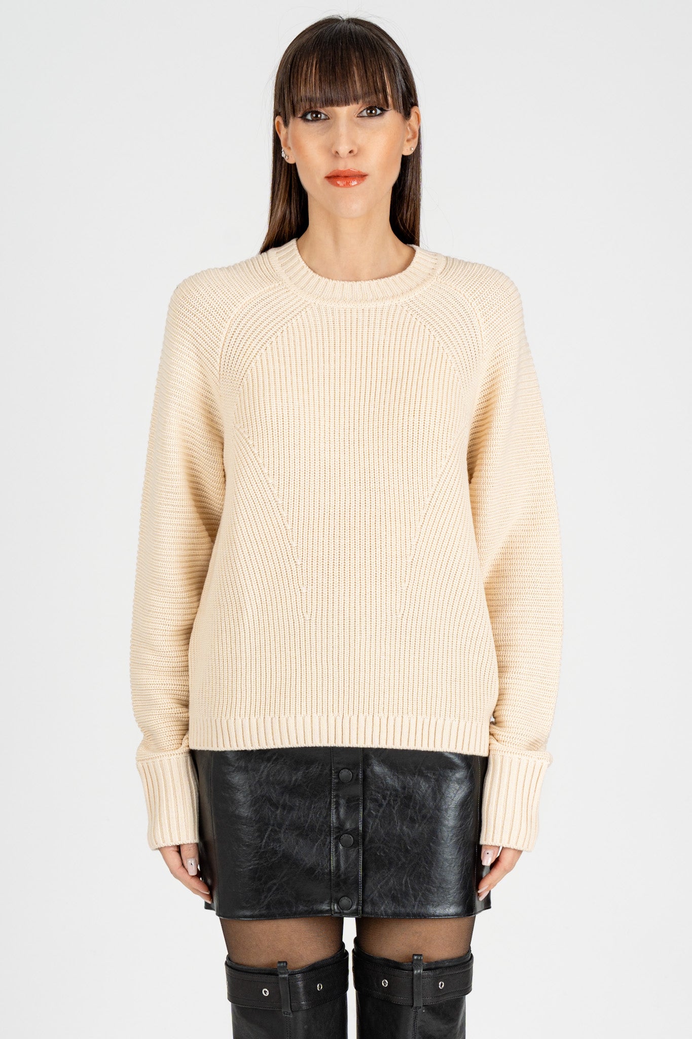 Maglia Giro Collo Essential Wooly White