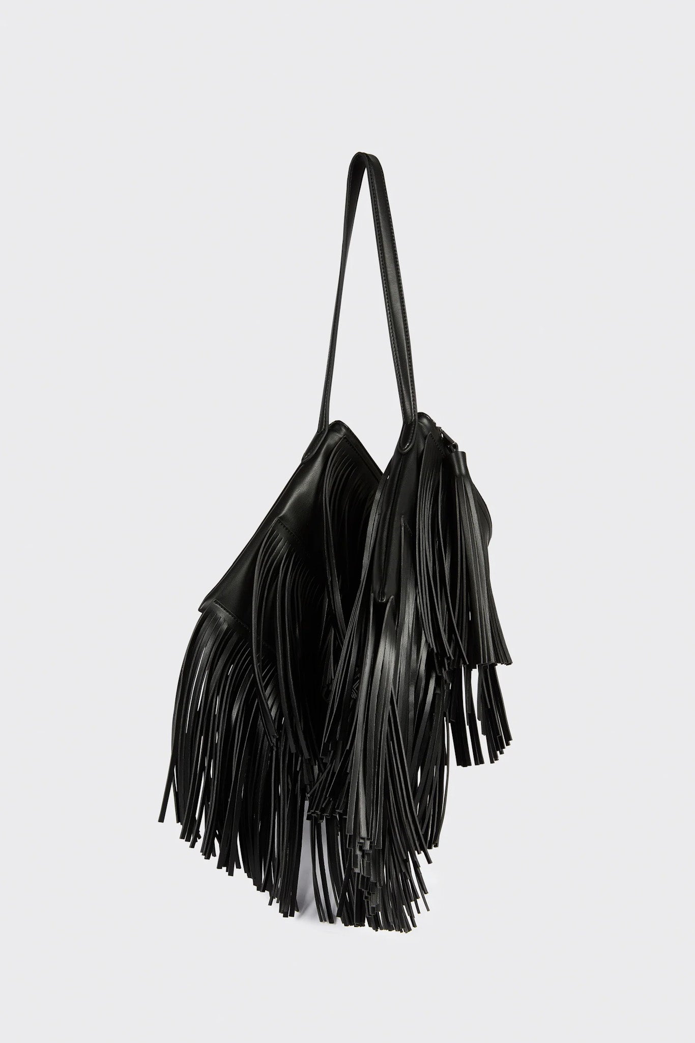 - Maxi borsa a spalla con frange in vegan leather