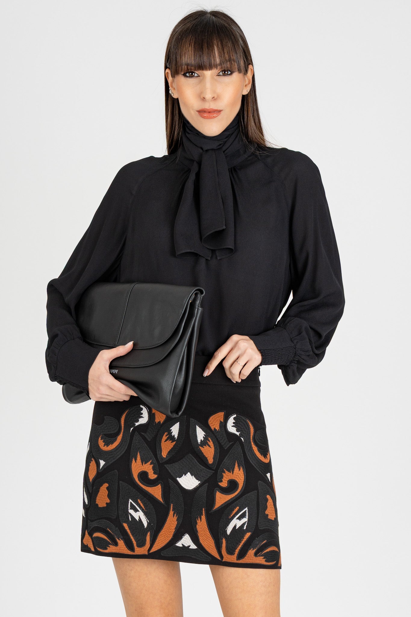 • Collo alto con sciarpina staccabile