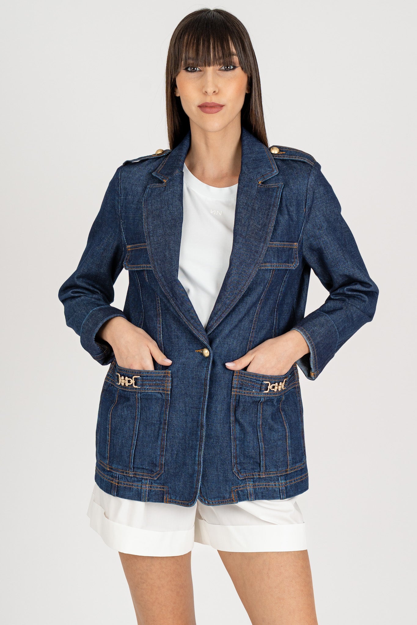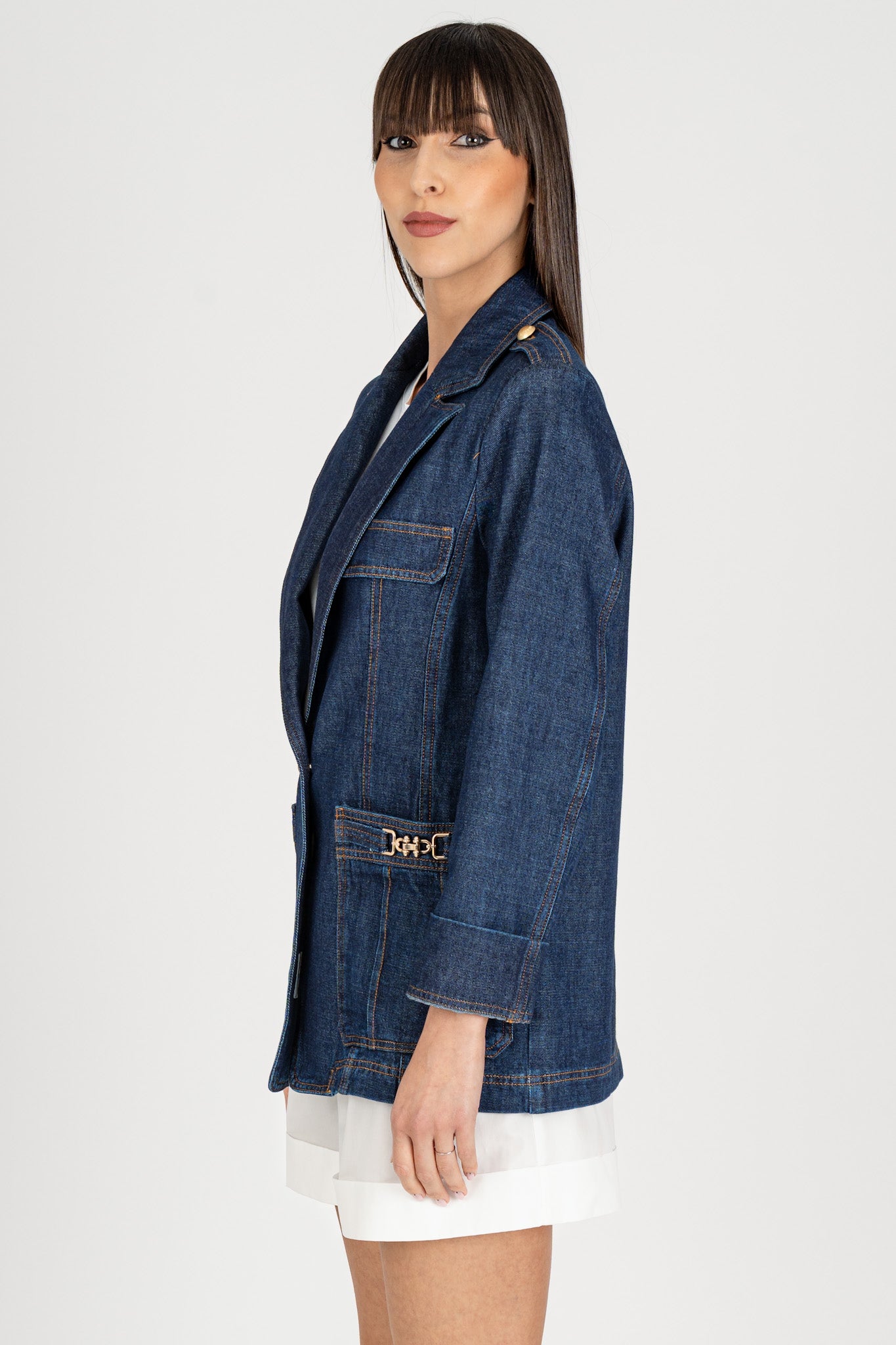 Giacca Blazer in Denim Blu Scuro