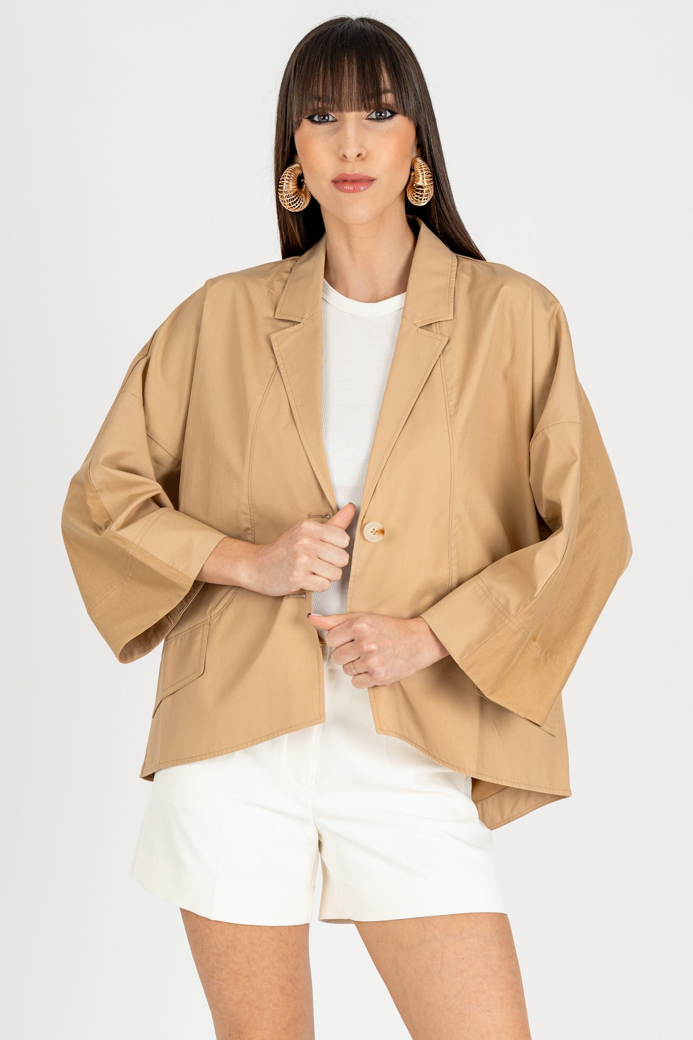 - Manica 3/4 con ampi risvolti strutturati
