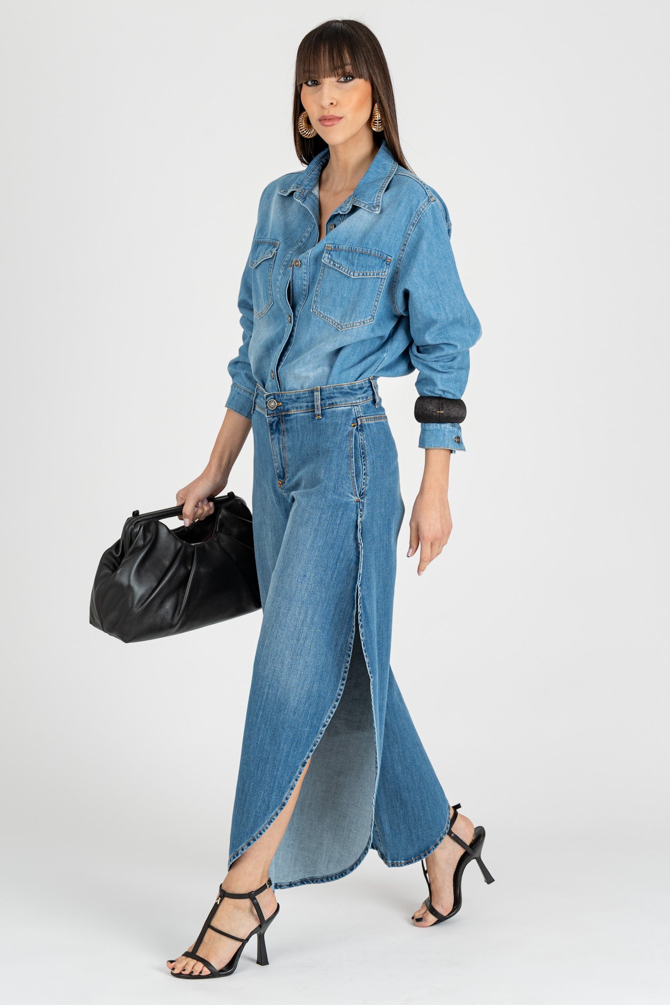 • Particolare taglio a farfalla con aperture su fianco gamba